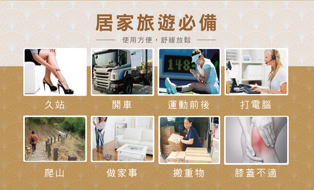 用 途:做家事、打電腦、爬山、開車舒展放鬆,增加清涼、舒適,具有保健之作用。