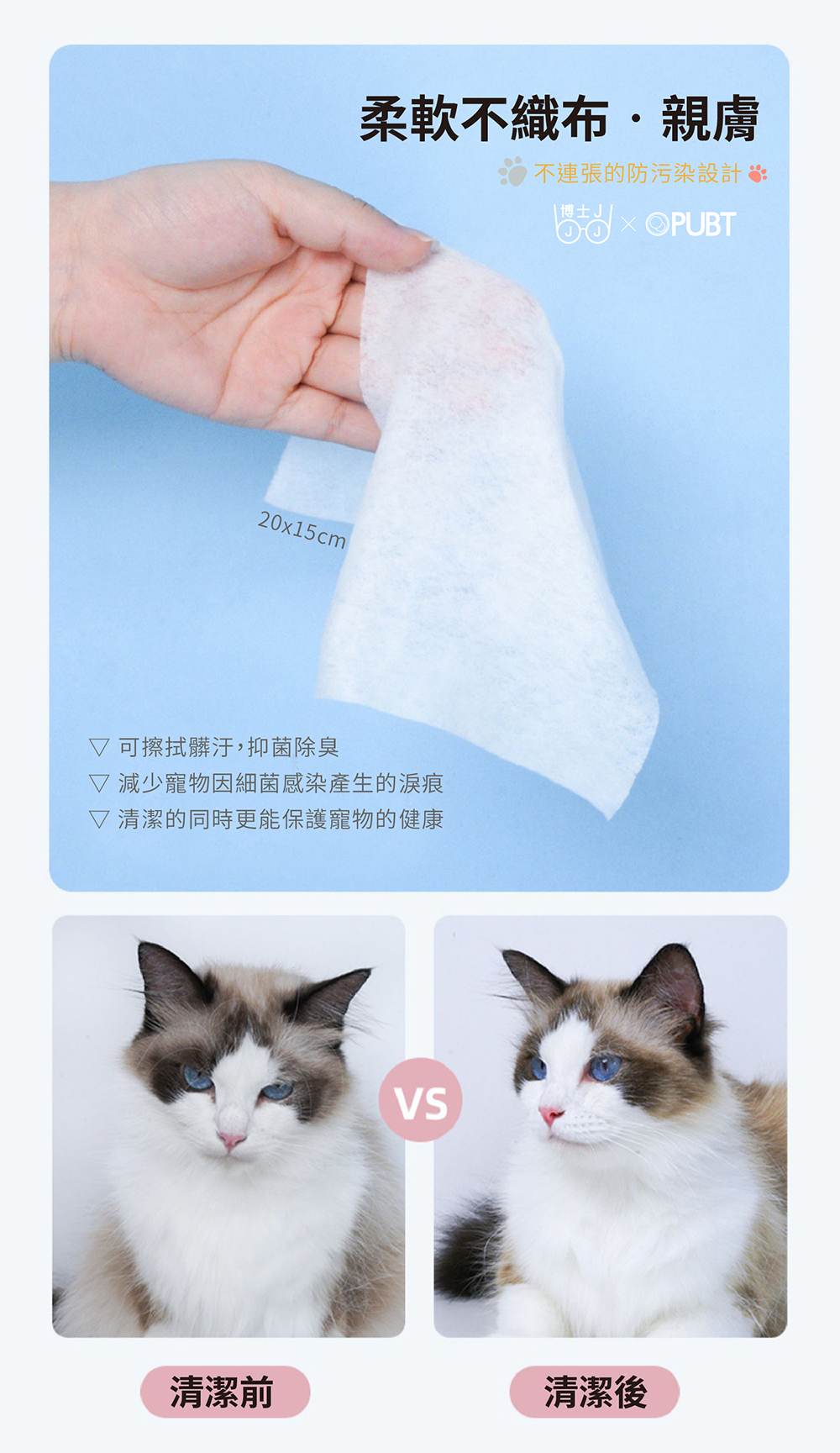 毛竉抑菌濕紙巾(80抽) 主要成份:水.水針布.抑菌劑.抑臭劑 規格:80抽/包 產地:台灣 注意事項:本產品避免嬰幼兒自用,以免誤食。本產品不溶於水,用後請丟於垃圾桶內。 使用方法:揭開包裝上蓋,抽取濕巾使用,使用後請將蓋子蓋回。